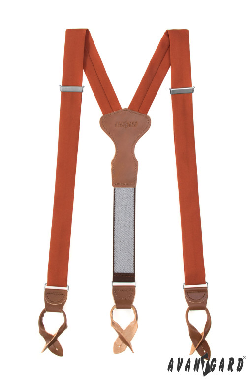Látkové šle Y s koženým středem a poutky - 35 mm - v dárkovém balení skořicová/hnědá, tmavě hnědá kůže