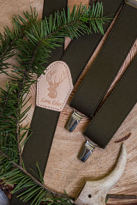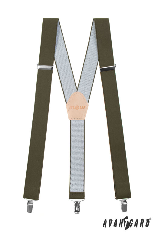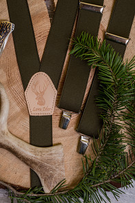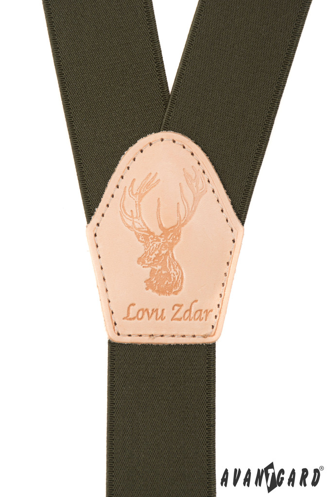 Myslivecké šle Y s koženým středem a zapínáním na klipy - 35 mm khaki, lovu zdar