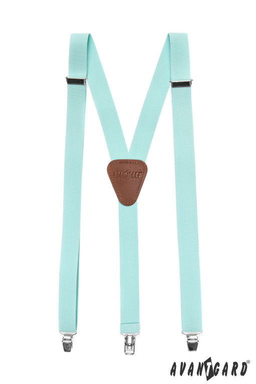 Šle Y s koženým středem a zapínáním na klipy - 25 mm světle mátová, tmavě hnědá kůže