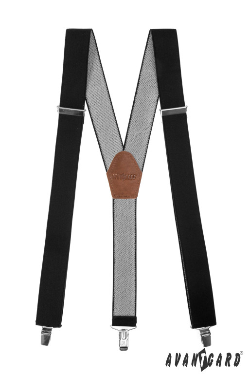 Šle Y s koženým středem a zapínáním na klipy - 35 mm černá, tmavě hnědá kůže